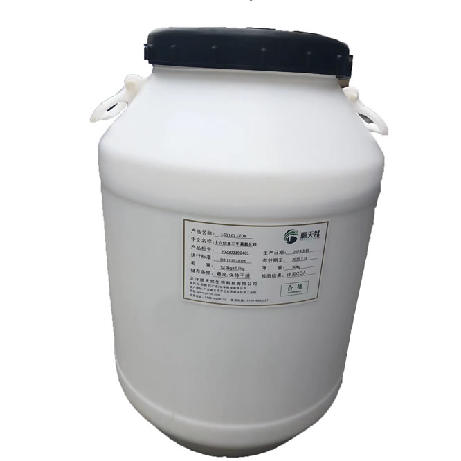 1.16/18 烷基二甲基叔(shu)胺與氯甲烷通過(guo)特殊工藝合成的(de)高📧品質陽🎯離子表(biǎo)面活性劑。